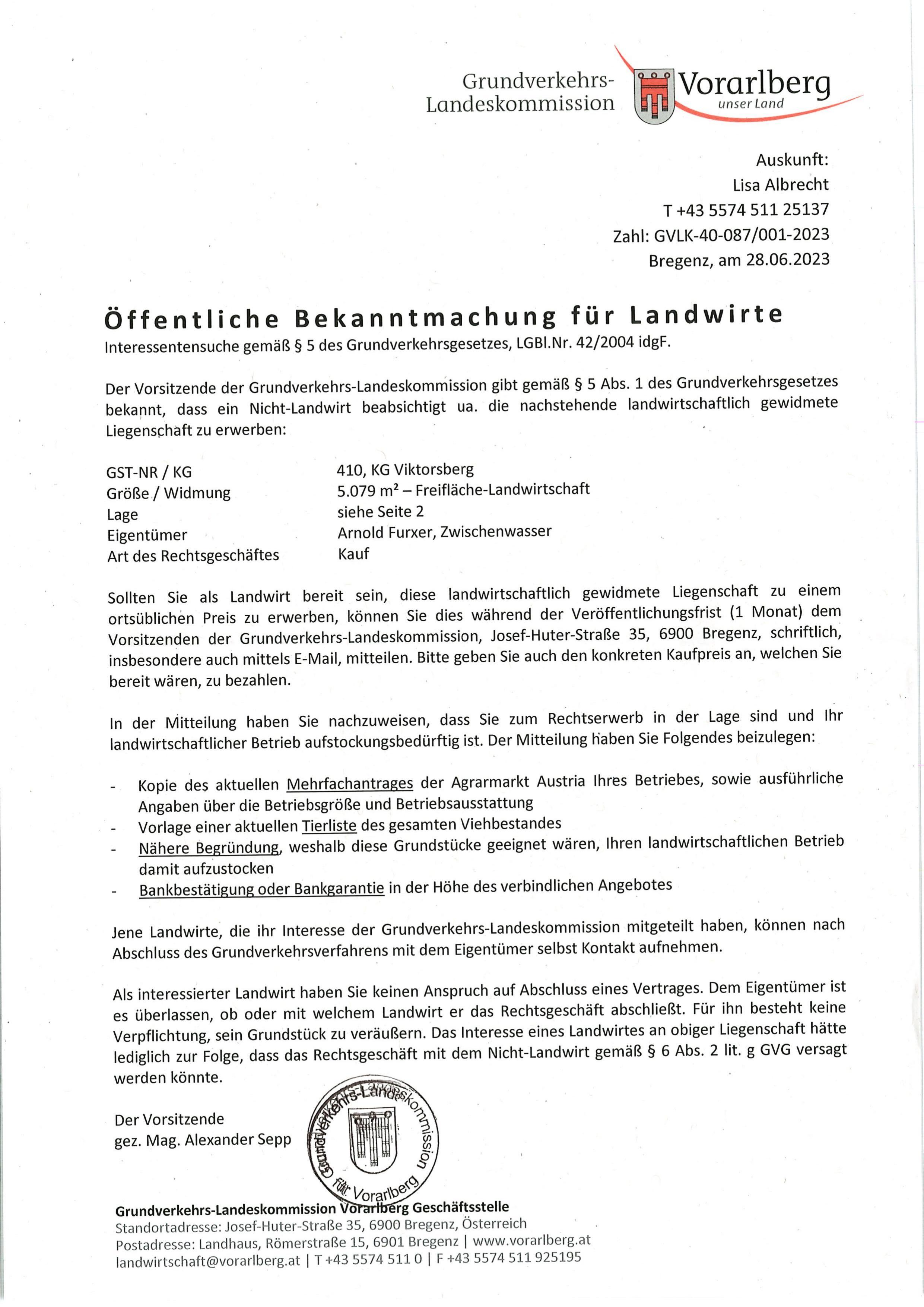 Öffentliche Bekanntmachung für Landwirtte